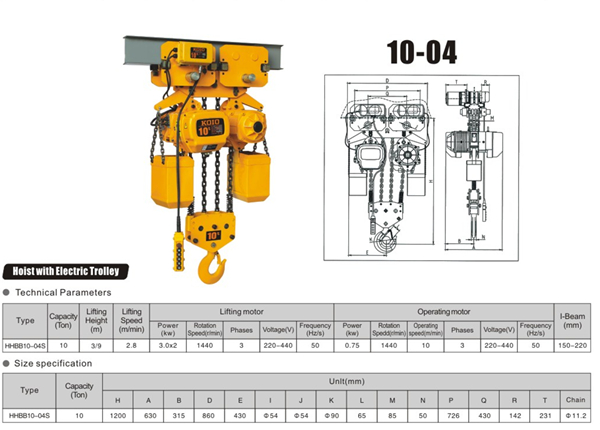 | 10 ton Electric Chain Hoist - HHBB10-04S | |||||